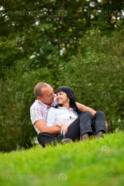 Молодая пара на зеленой траве
