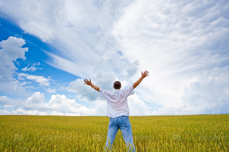 Молодой мужчина в поле