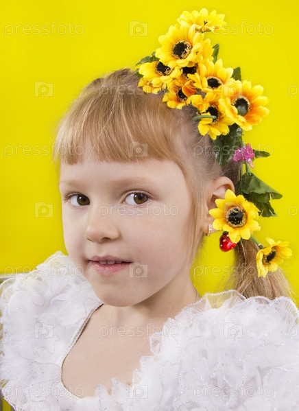 Маленькая девочка с желтыми цветами в волосах