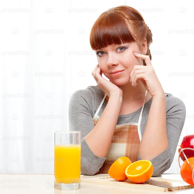 Рыжеволосая женщина на кухне