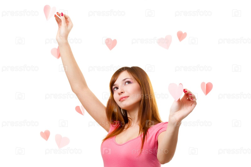 Девушка касается сердечек