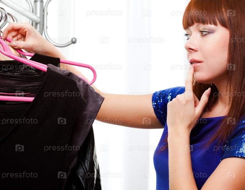 Женщина выбирает одежду в магазине