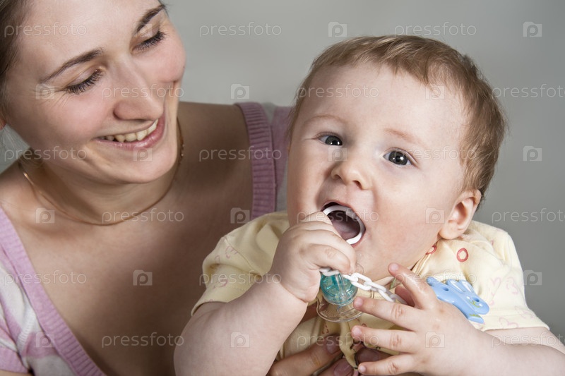 Мать и сын на белом фоне