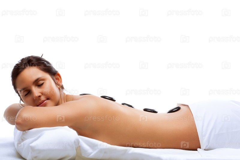 Красивая женщина получает терапевтическое лечение горячими камнями