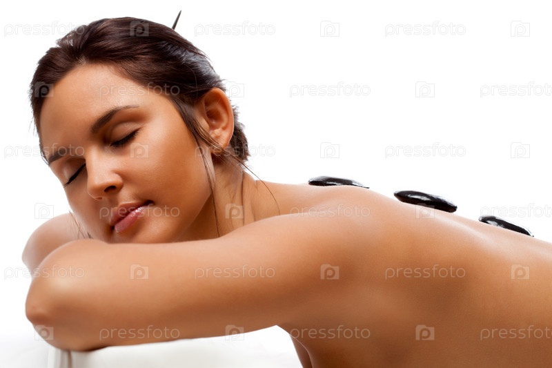 Красивая женщина получает терапевтическое лечение горячими камнями