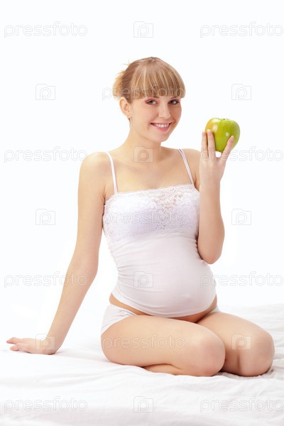Беременная женщина с яблоком