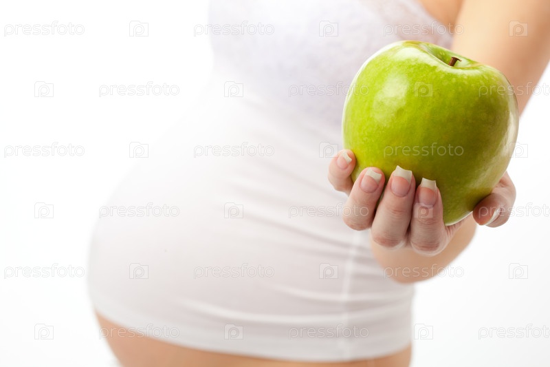 Беременная женщина с яблоком