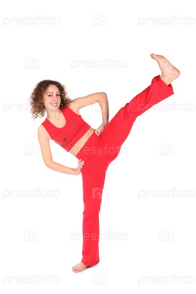 Девушка занимается спортом на белом фоне