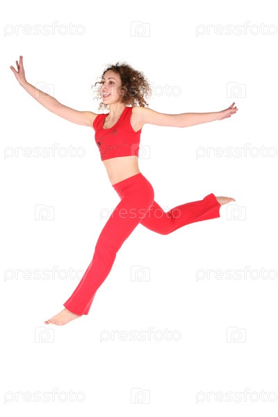 Девушка занимается спортом на белом фоне