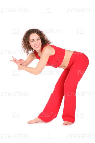 Девушка занимается спортом на белом фоне