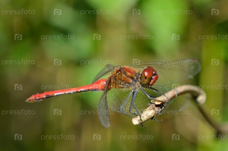 Яркая стрекоза на ветке