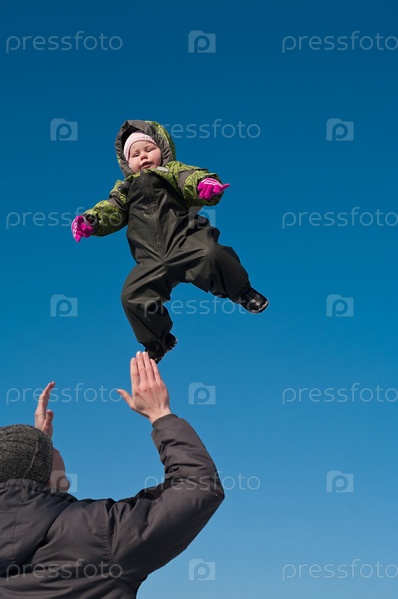 Молодой отец, подбрасывающий ребенка