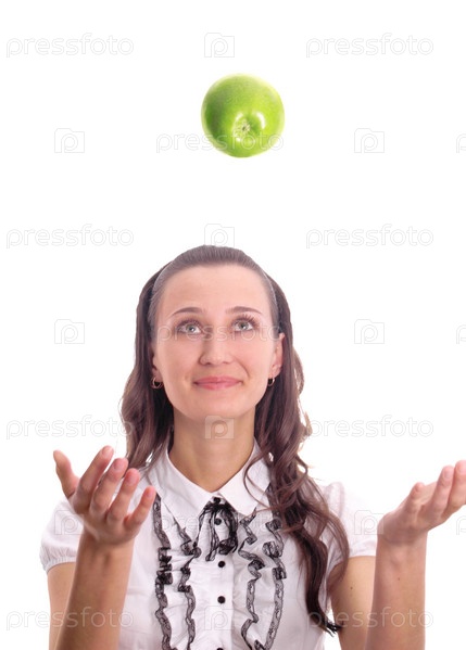 Летящее яблоко и девушка