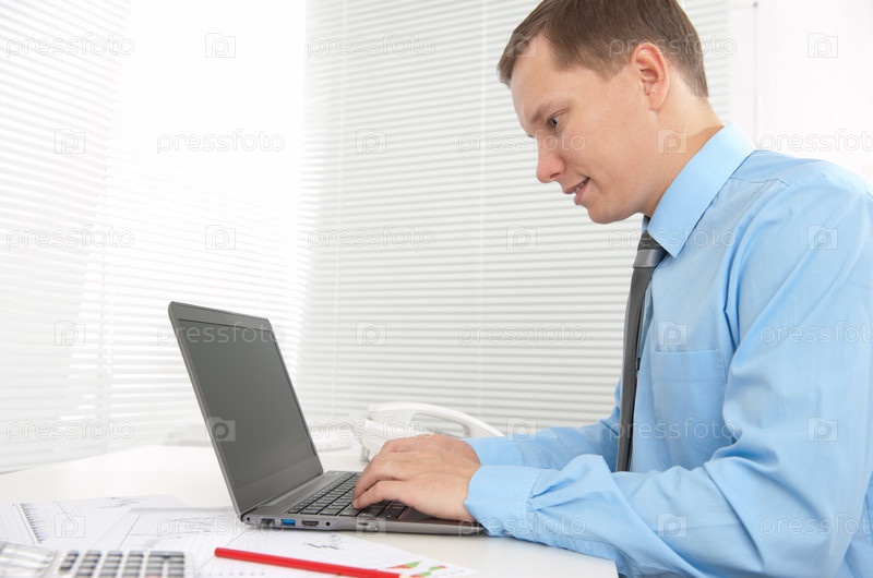 Бизнесмен с ноутбуком в офисе