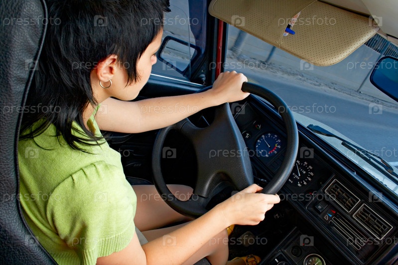 Женщина на дороге,за рулем автомобиля