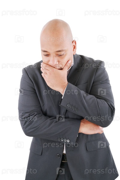 Задумчивый предприниматель на белом фоне