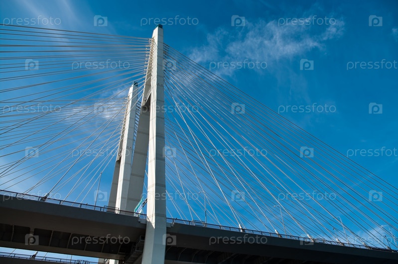 Мост реку Нева, Россия, Санкт-Петербурге Голубое небо с облаками. Обуховский