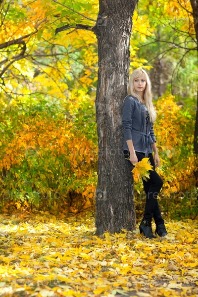 Молодая красивая женщина в осеннем парке