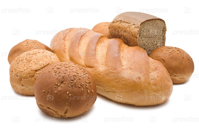 Различные виды хлеба на белом фоне