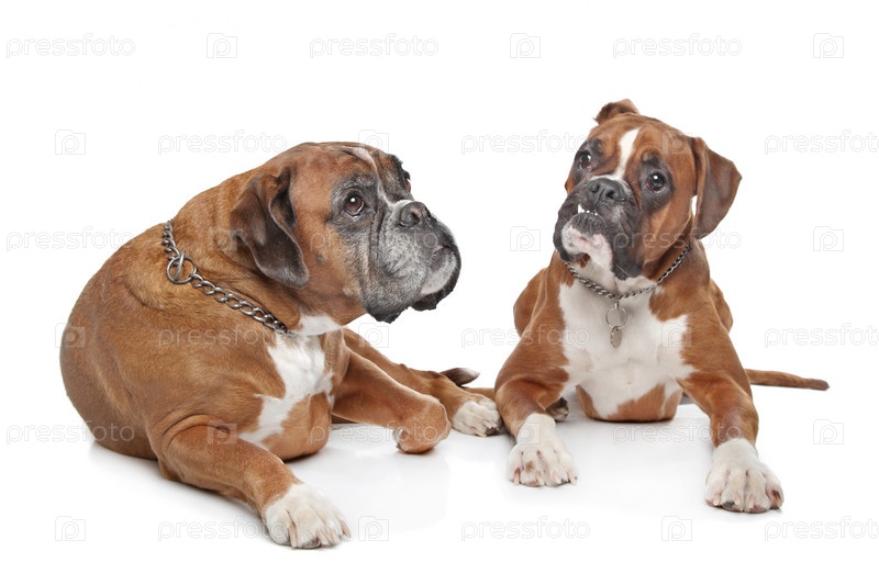 Две палевых собаки породы боксер