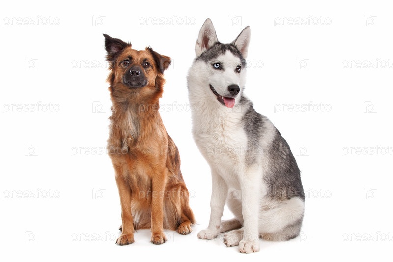 Сибирский хаски и собака смешанной породы