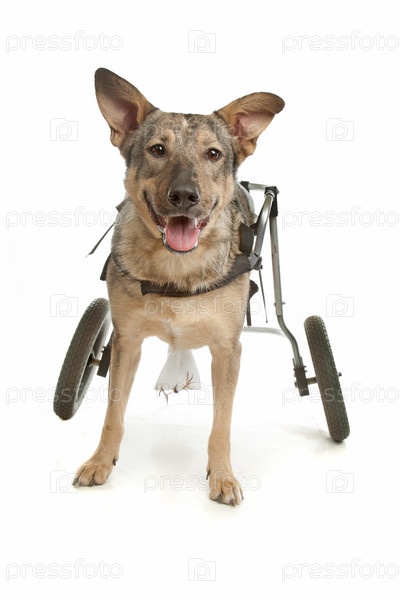 Собака в инвалидной коляске