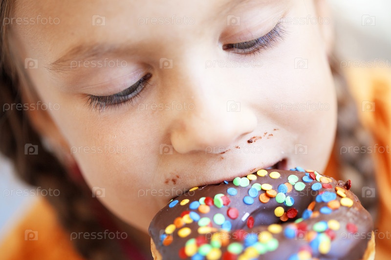 Девочка ест пончик