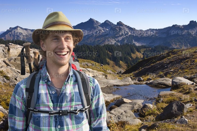 Молодой мужчина на фоне гор