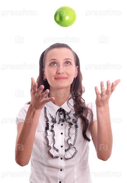Девушка с зеленым яблоком