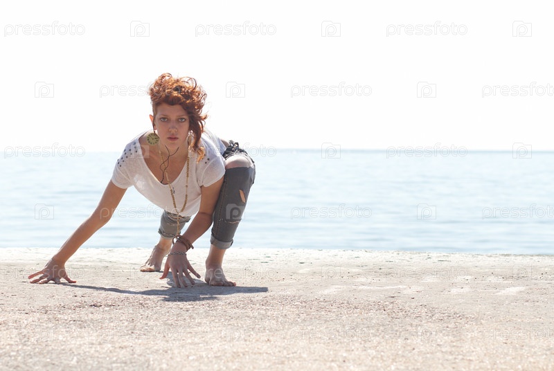 Молодая балерина танцует на пляже