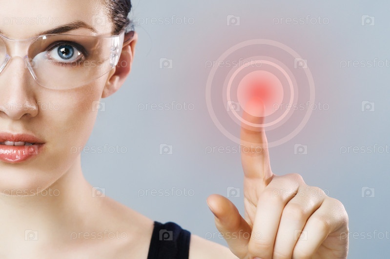 Красивая девушка, использующая инновационные технологии. Крупный план