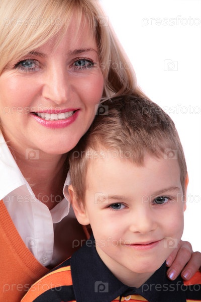 Женщина средних лет и ребенок, изолированные на белом 2