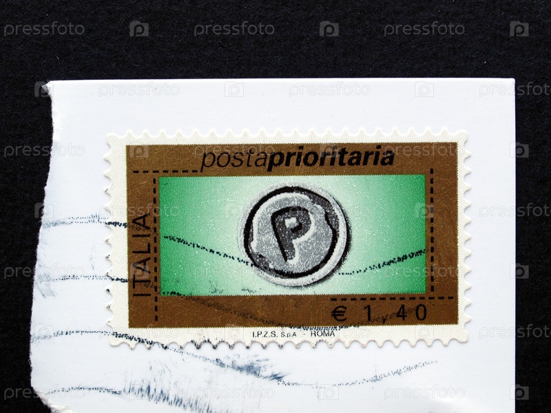 Итальянская марка с почтовых штемпелем из Италии