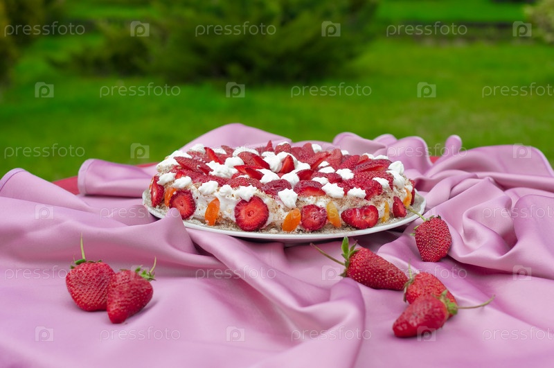 Торт, украшенный клубникой