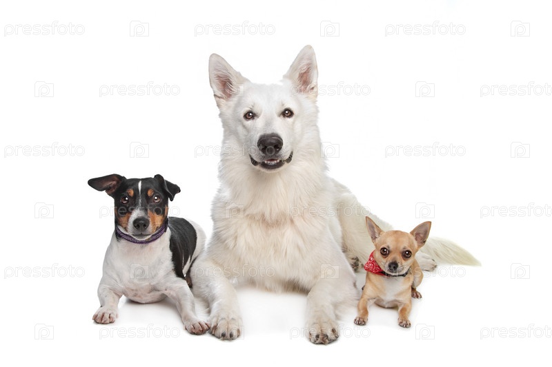 Чихуахуа, белая овчарка и Джек Рассел терьер