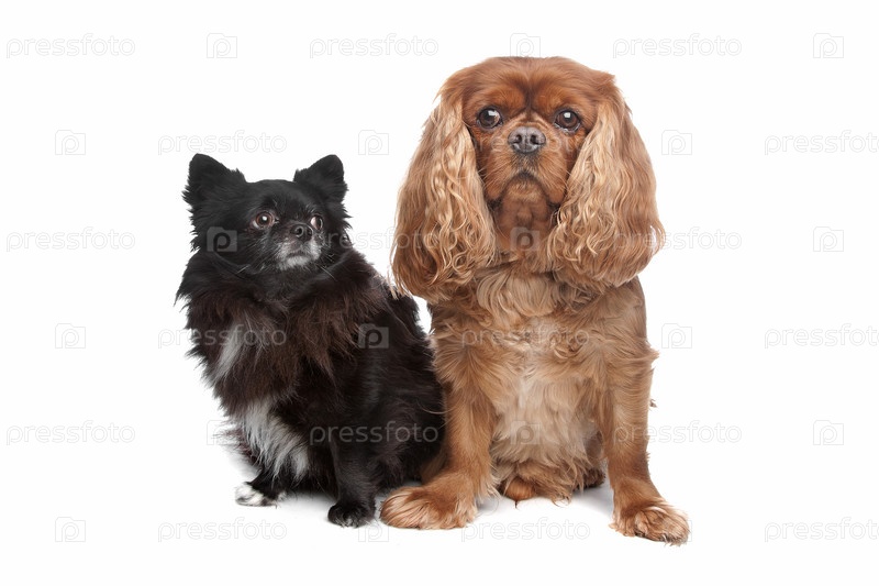 Кавалер Кинг Чарльз спаниель и черный Чихуахуа