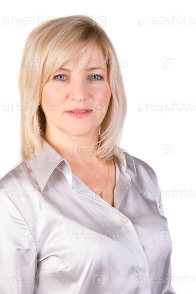 Женщина в светлой блузке на белом фоне