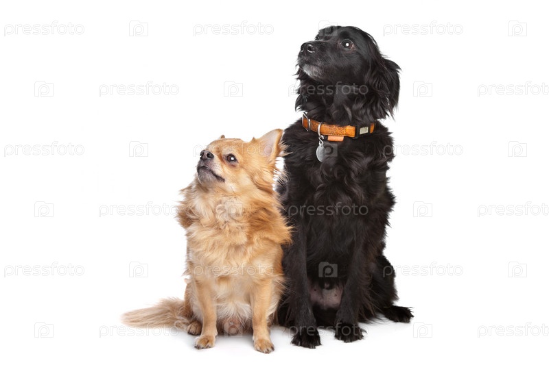 Черная собака-помесь и чихуахуа
