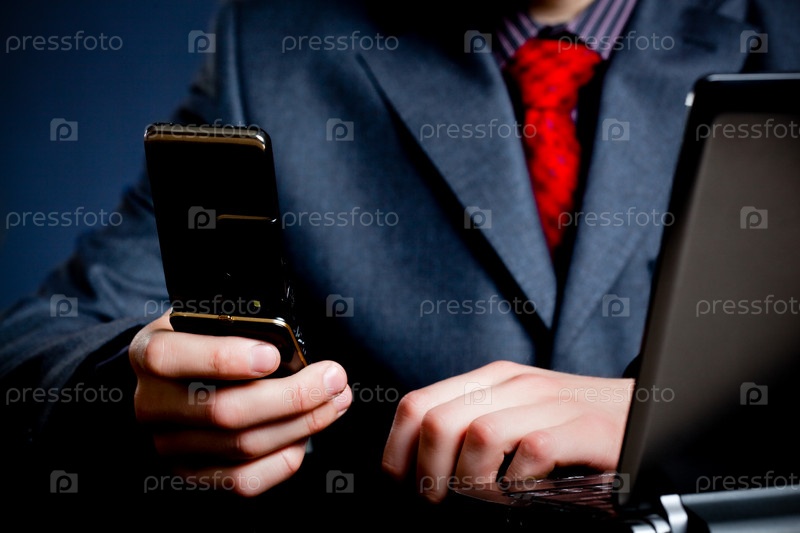 Бизнесмен с телефоном и ноутбуком