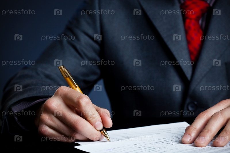 Бизнесмен пишет ручкой на бумаге