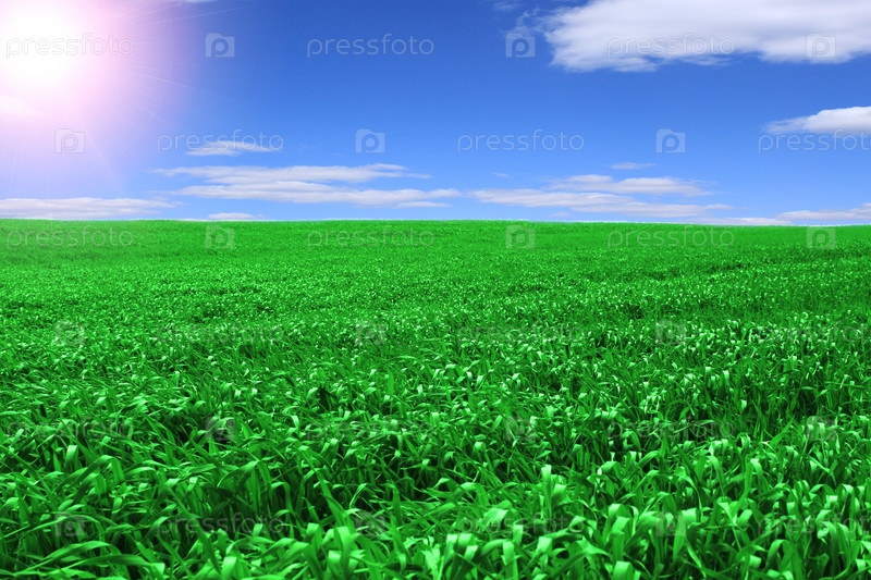 Зеленое поле и голубое небо