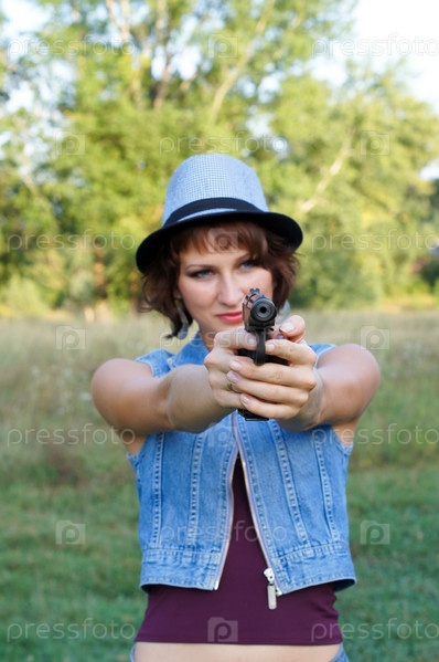 Девушка в шляпе с пистолетом