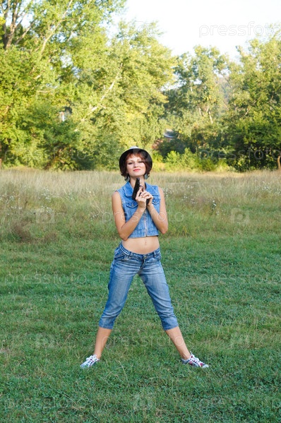 Девушка в шляпе с пистолетом