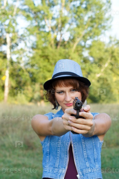 Девушка в шляпе с пистолетом