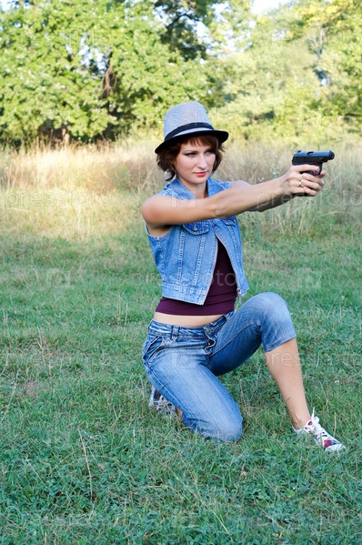 Девушка в шляпе с пистолетом