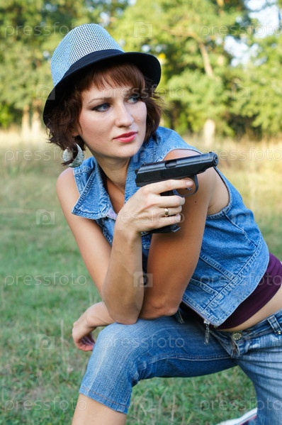 Девушка в шляпе с пистолетом