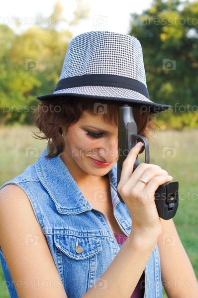 Девушка в шляпе с пистолетом