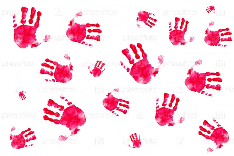 Отпечатки детских рук на белом фоне