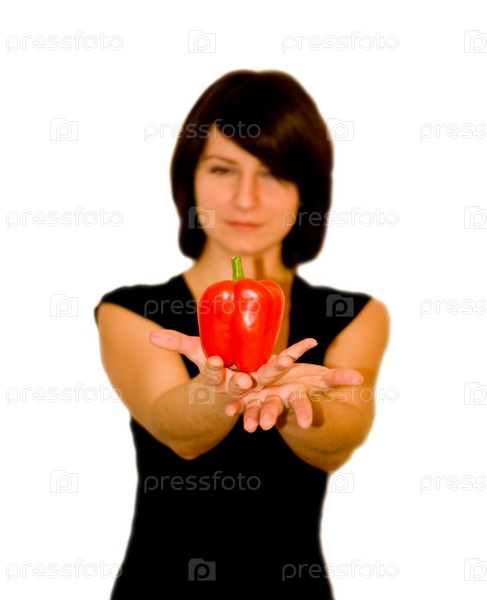 Девушка с перцем в руках
