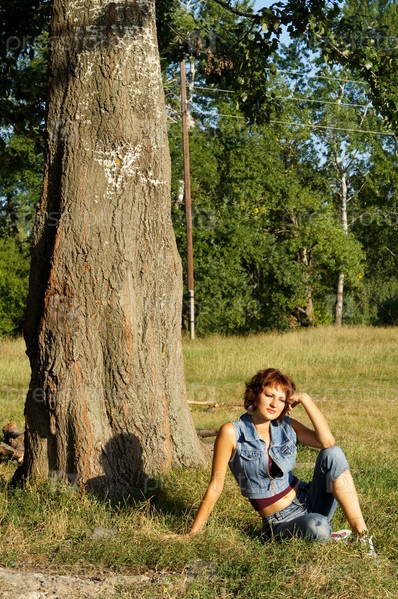 Молодая девушка на фоне леса